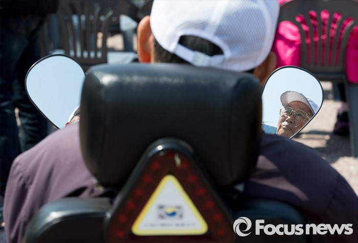 (서울=포커스뉴스) 18일 오전 서울 영등포구 여의도공원에서 함께서울 누리축제에 참가한 한 장애인이 공연을 관람하고 있다.