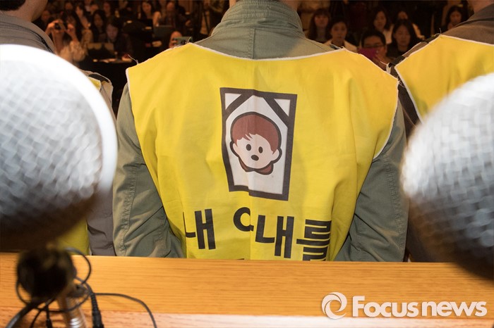 (서울=포커스뉴스) 18일 오전 서울 중구 롯데호텔앤리조크 서울에서 열린 가습기 살균제 사망사건 관련 기자회견이 끝나고 피해자 유족들을 비롯한 시민단체 회원들이 입장을 발표하고 있다.