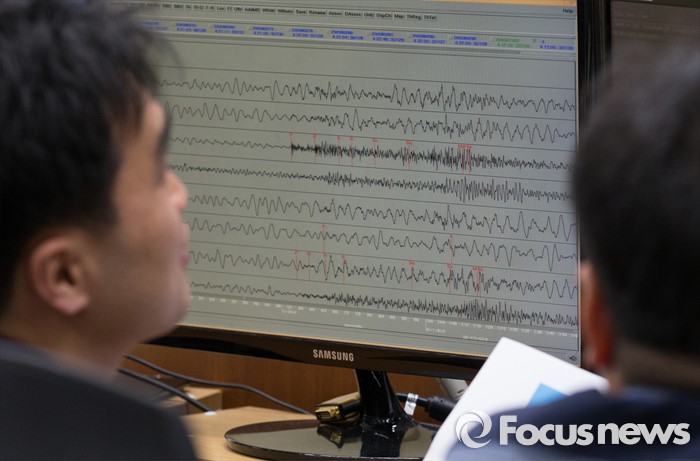 (대전=포커스뉴스) 오스카 에레라 주한 에콰도르 대사가 18일 오전 대구 유성구 한국지질자원연구원 내 지진연구센터 상황실을 방문한 가운데 관계자들이 국내 지진상황을 모니터하고 있다.