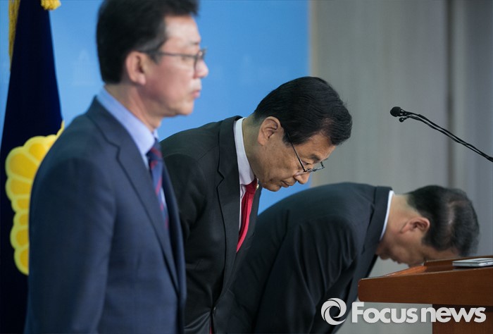 (서울=포커스뉴스) 20대 총선 수도권 지역에서 당선한 홍철호(경기 김포, 왼쪽부터), 이현재(경기 하남),이우현(경기 용인갑) 의원이 18일 오후 서울 여의도 국회 정론관에서 정쟁을 중단하고 민생경제를 살리자는 내용의 성명서를 발표한 뒤 인사하고 있다.