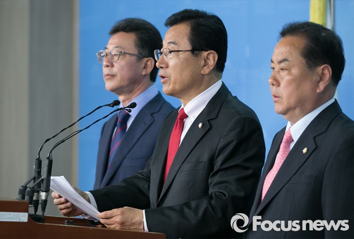 (서울=포커스뉴스) 20대 총선 수도권 지역에서 당선한 홍철호(경기 김포, 왼쪽부터), 이현재(경기 하남),이우현(경기 용인갑) 의원이 18일 오후 서울 여의도 국회 정론관에서 정쟁을 중단하고 민생경제를 살리자는 내용의 성명서를 발표하고 있다.