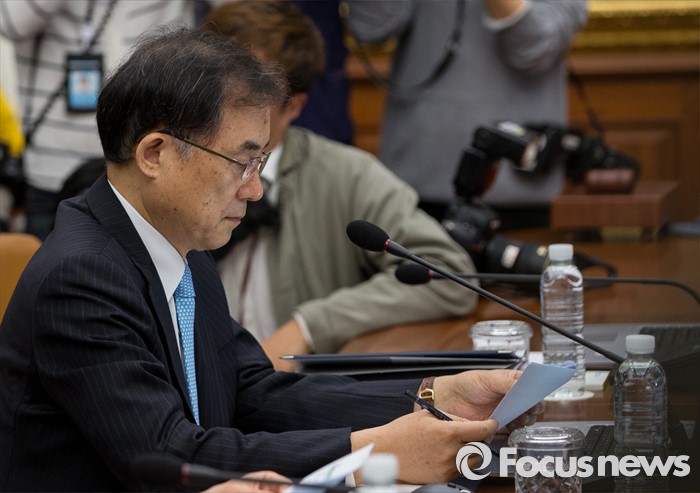 (서울=포커스뉴스) 19일 오전 서울 중구 남대문로 한국은행 본관에서 열린 금융통화위원회의에 참석한 정순원 금통위원이 서류를 살펴보고 있다.