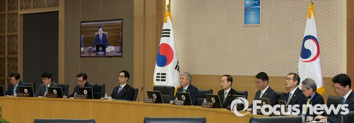 (세종=포커스뉴스) 19일 오전 세종시 정부세종청사 국무회의장에서 서울-세종 영상회의로 열린 국무회의에 참석한 국무위원들이 황교안 총리의 모두발언을 경청하고 있다.