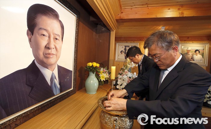 (서울=포커스뉴스) 문재인(오른쪽) 전 더불어민주당대표가 18일 김대중 전 대통령의 3남인 김홍걸 더불어민주당 국민통합위원장과 함께 전남 신안 하의도에 있는 김 전 대통령의 생가를 방문, 분향하고 있다.<사진제공=문재인의원실>