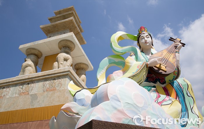 (서울=포커스뉴스) 19일 오전 서울 광화문광장에 봉축장엄등이 설치돼 있다. 20일 광화문광장에서 열리는 봉축장엄등 점등식은 국보 제35호인 화엄사 사사자삼층석탑을 원형으로 삼아 제작됐다.