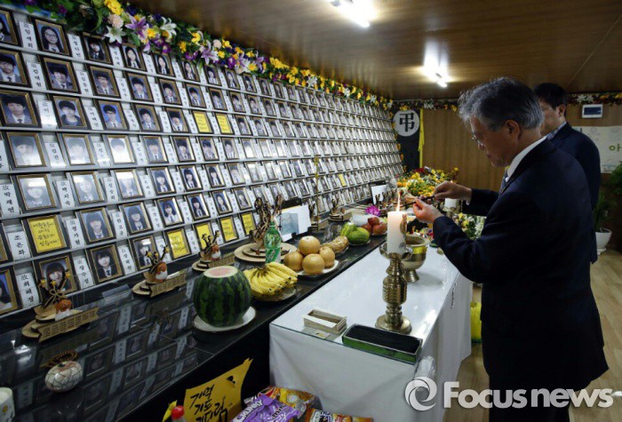 (서울=포커스뉴스) 문재인(왼쪽) 더불어민주당 전 대표와 故 김대중 전 대통령의 3남 김홍걸 국민통합위원장이 지난 18일 전남 진도 팽목항에 마련된 세월호 참사 희생자 분향소를 찾아 조문하고 있다. <사진제공=문재인 의원실>