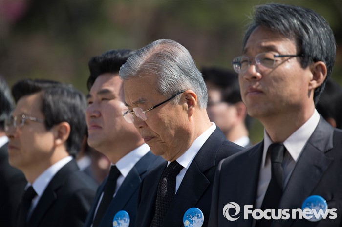 (서울=포커스뉴스) 19일 오전 서울 강북구 국립 4.19 민주묘지에서 열린 '제56주년 4.19혁명 기념식'에 참석한 김종인(오른쪽 두 번째) 더불어민주당 비대위 대표가 생각에 잠겨있다.