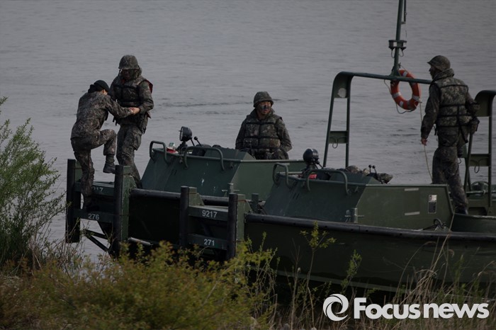 (여주=포커스뉴스) 19일 오전 경기도 여주시 남한강 일대에서 육군 20사단이 K-2 흑표전차 잠수도하훈련을 하고 있다.