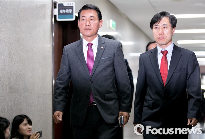 (서울=포커스뉴스) 원유철 새누리당 원내대표의 비상대책위원회 체제에 반대 입장을 가진 의원 및 당선인으로 구성된 당 혁신모임(가칭) 소속 황영철(왼쪽), 하태경 의원 등이 19일 오후 서울 여의도 국회에서 면담을 위해 원 원내대표 집무실로 향하고 있다.