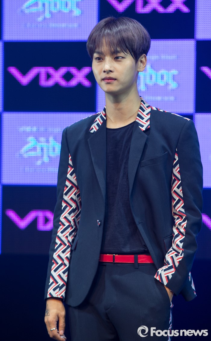 홀서울=포커스뉴스) 19일 오후 서울 마포구 롯데카드 아트센터에서 열린 아이돌그룹 VIXX의 싱글앨범 'Zelos' 발표 쇼케이스에 참여한 멤버 엔이 포토타임을 갖고 있다.