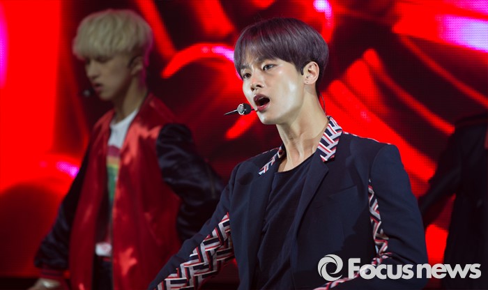 홀서울=포커스뉴스) 19일 오후 서울 마포구 롯데카드 아트센터에서 열린 아이돌그룹 VIXX의 싱글앨범 'Zelos' 발표 쇼케이스에 참여한 멤버 엔이 신곡 '다이너마이트'의 무대를 선보이고 있다.