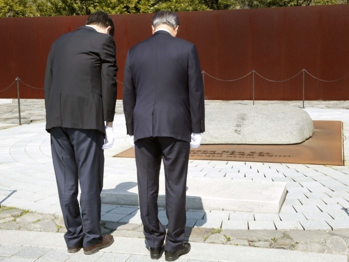 (서울=포커스뉴스) 문재인(오른쪽) 더불어민주당 전 대표와 故 김대중 전 대통령의 삼남 김홍걸 국민통합위원장이 19일 경남 김해 봉하마을을 방문해 故 노무현 전 대통령 묘역 참배를 하고 있다. <사진제공=문재인 의원 블로그>