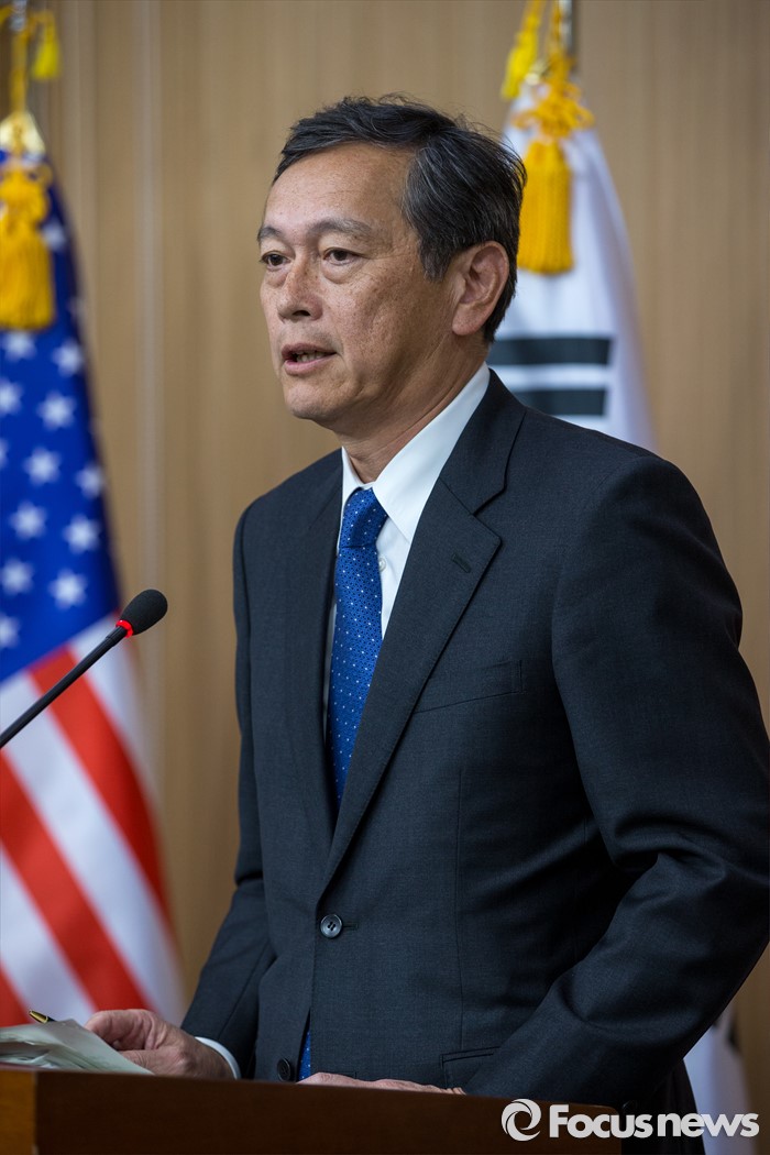 (서울=포커스뉴스) 사이키 아키타카 일본 외무성 사무차관이 19일 오후 서울 종로구 외교부에서 '제3차 한미일 외교차관 협의회' 결과 발표를 하고 있다.