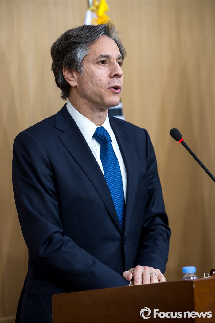 (서울=포커스뉴스) 토니 블링컨 미국 국무부 부장관이 19일 오후 서울 종로구 외교부에서 '제3차 한미일 외교차관 협의회' 결과 발표를 하고 있다.