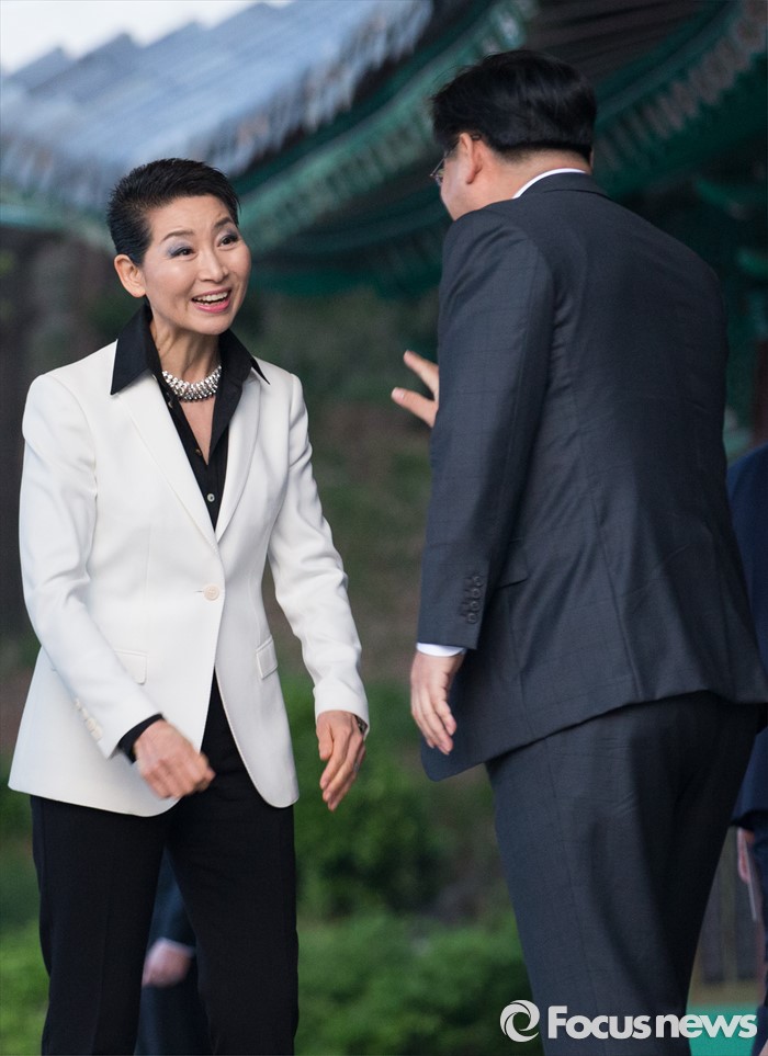(서울=포커스뉴스) 주형환(오른쪽) 산업통상자원부 장관이 19일 오후 서울 중구 신라호텔에서 열린 '제2회 컨데나스트 인터내셔널 럭셔리 콘퍼런스' 전야제에 참석 후 김성주 MCM 회장과 인사하고 있다.