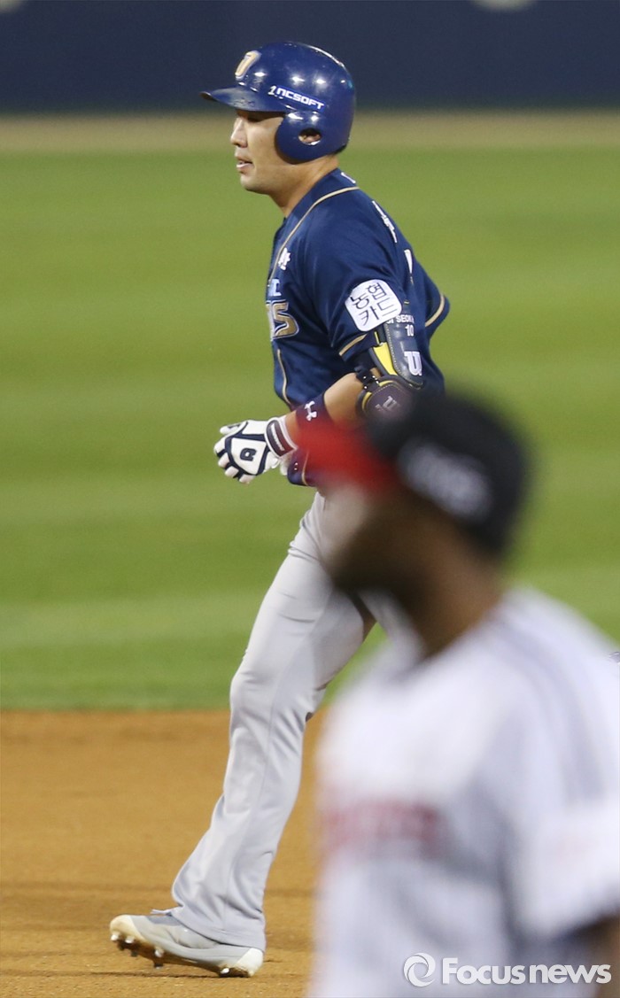 (서울=포커스뉴스) 19일 서울 잠실구장에서 열린 2016 프로야구 NC-LG 경기 6회초 2사 2루에서 NC 지석훈이 좌월 2점 홈런을 치고 베이스를 돌고 있다.