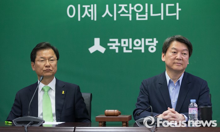 (서울=포커스뉴스) 안철수, 천정배 국민의당 상임공동대표가 20일 오전 서울 마포 당사에서 열린 최고위원회의에 참석하고 있다.