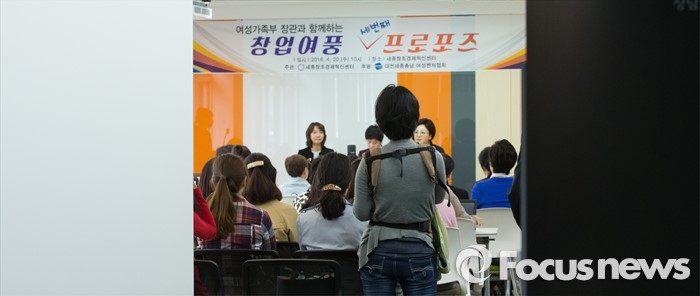 (세종=포커스뉴스) 20일 오전 세종시 조치원읍 세종창조경제혁신센터에서 열린 창업여풍 세 번째 프로포즈 여성가족부장관과 함께하는 토크콘서트에서 참석자가 아이를 안고 토크콘서트를 바라보고 있다.