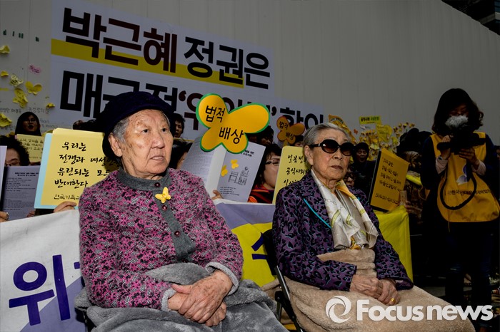 | △ 일본군 위안부 문제해결을 위한 정기 수요시위 참석한 할머니들 |