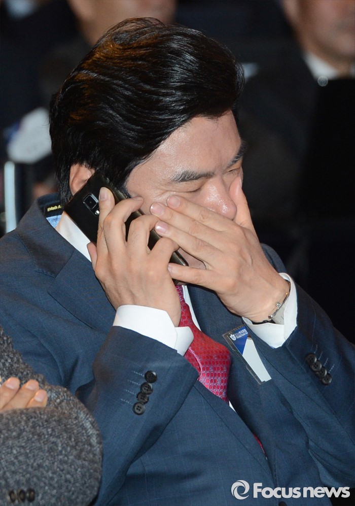 (서울=포커스뉴스) 원유철 새누리당 원내대표가 20일 오전 서울 중구 을지로 롯데호텔에서 열린 2016 한국포럼에 참석해 심각한표정으로 통화를 하고 있다.