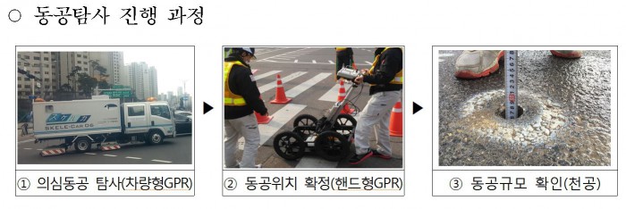 서울시는 올해 말까지 300여개의 동공을 발견할 것으로 보고 있다. 서울시는 도로함몰 개연성이 높은 주요 간선도로를 중심으로 3년 주기로 동공탐사를 실시하고 그 외 구간은 함몰 우려 여부를 검토해 탐사를 진행할 방침이다. 또 현재 진행 중인 동공탐사 용역 외에도 246km를 추가로 발주해 탐사할 계획이다.