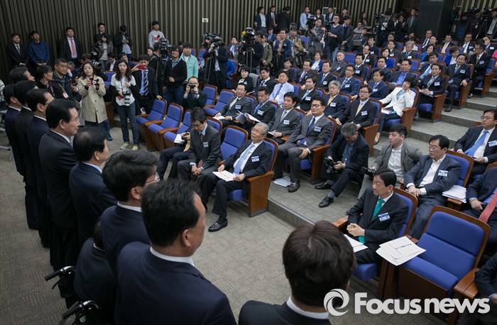 (서울=포커스뉴스) 20일 오전 서울 여의도 국회에서 열린 더불어민주당 20대 총선 당선자 대회에 참석한 김종인 비대위 대표 등 당선인들이 대전 및 충청 지역 당선인들의 인사말을 듣고 있다.