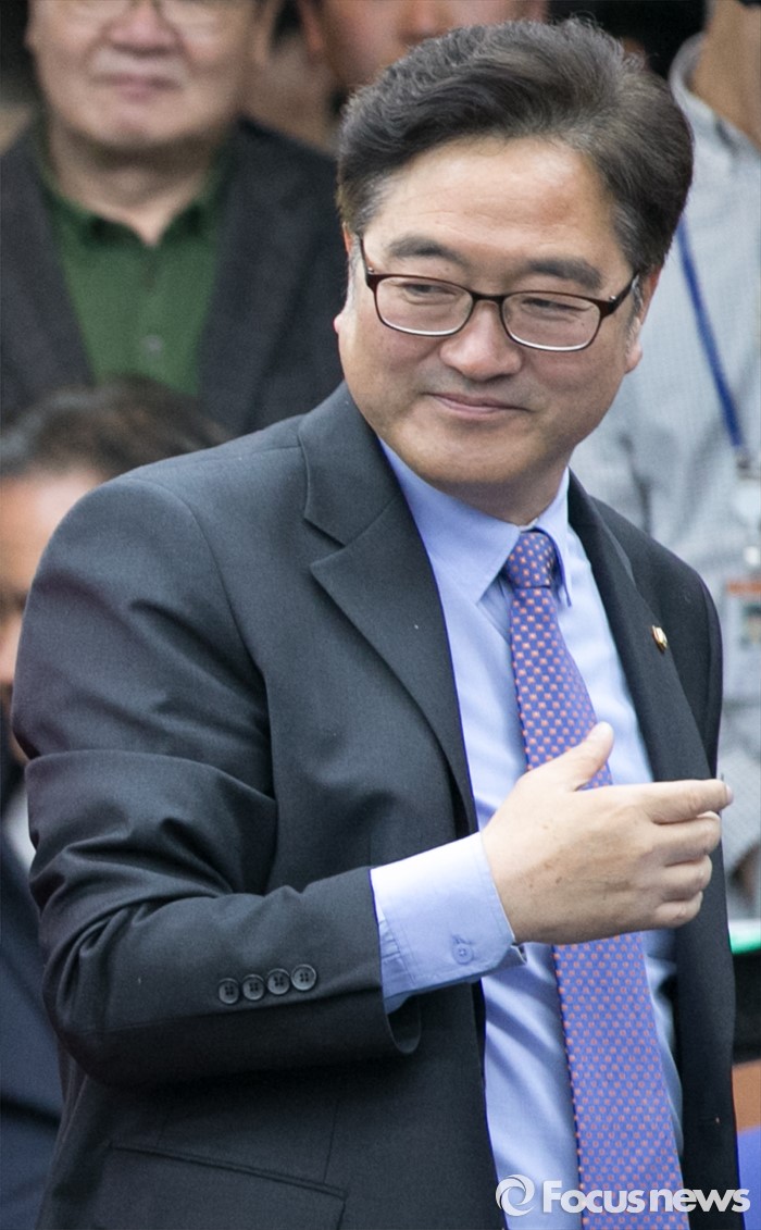 (서울=포커스뉴스) 20일 서울 여의도 국회에서 열린 더불어민주당 20대 총선 당선자 대회에 참석한 우원식 당선인이 동료 당선인과 대화하고 있다.