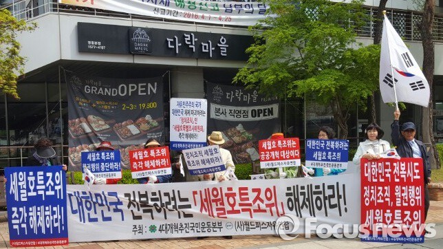 (서울=포커스뉴스) 지난해부터 세월호 특별조사위원회(특조위) 해체 촉구 집회를 열고 있는 월드피스자유연합이 자신들은 회원들만 집회에 참여한다는 입장을 밝혔다.