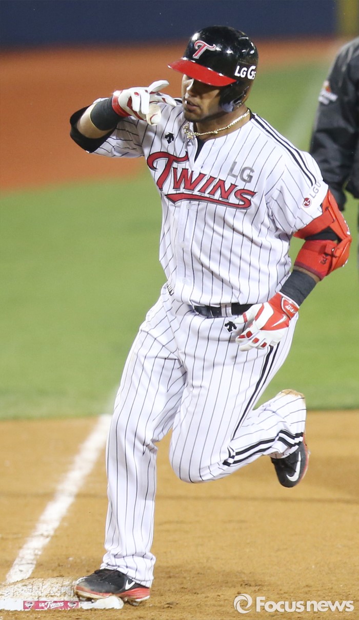 (서울=포커스뉴스) 20일 서울 잠실구장에서 열린 2016 프로야구 NC-LG 경기 8회말 1사후 LG 히메네스가 좌월 1점 홈런을 치고 3루를 돌아 홈인하고 있다.