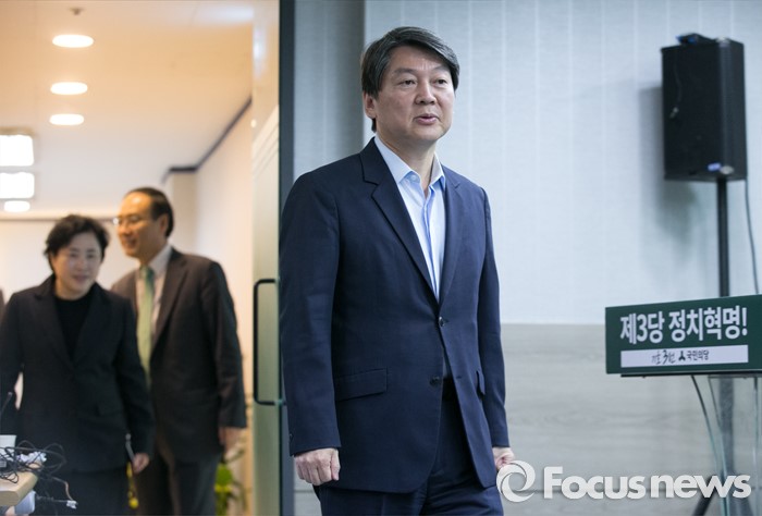 (서울=포커스뉴스) 안철수 국민의당 상임공동대표가 21일 오전 서울 마포구 당사에서 과학의 날 특별 브리핑을 위해 입장하고 있다.