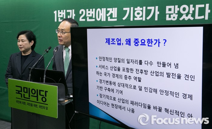 (서울=포커스뉴스) 오세정(오른쪽), 신용현 국민의당 비례대표 당선인이 21일 오전 서울 마포구 당사에서 안철수 상임공동대표의 과학의 날 특별 브리핑에 이어 추가 설명을 하고 있다.