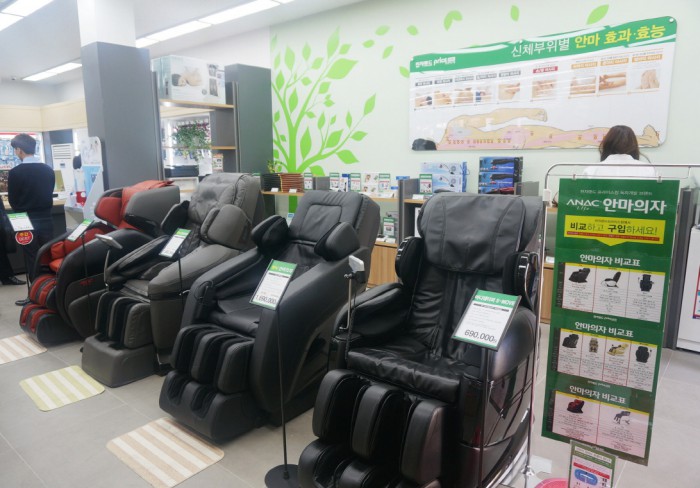 건강 전문가를 초빙해 판매사원에게 인체의 구성과 마사지법뿐 아니라 안마의자, 반신욕기, 승마운동기 등의 사용 노하우를 교육해 소비자들의 제품 체험을 돕고 알맞은 제품들을 추천할 수 있도록 하고 있다.전자랜드 경남 밀양점 내 위치한 힐링존.<사진제공=전자랜드>