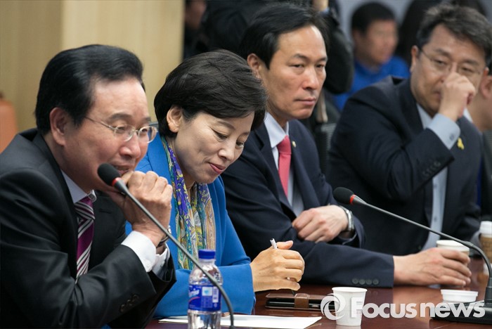 (서울=포커스뉴스) 21일 오전 서울 여의도 국회 의원회관에서 더미래연구소와 더좋은미래 모임 공동주최로 열린 4·13 총선 평가와 전망 확인된 민심, 남겨진 과제 토론회에 참석한 이철희(오른쪽부터) 더불어민주당 전략기획위원장, 우상호, 남인순, 변재일 의원이 토론자들의 발언을 듣고 있다.