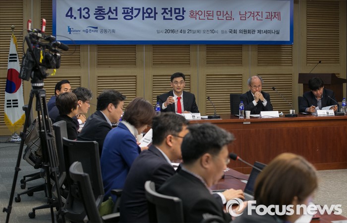 (서울=포커스뉴스) 21일 오전 서울 여의도 국회 의원회관에서 더미래연구소와 더좋은미래 모임 공동주최로 열린 4·13 총선 평가와 전망 확인된 민심, 남겨진 과제 토론회에 참석한 패널들이 토론을 하고 있다.