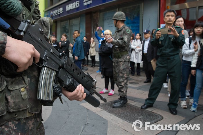 (서울=포커스뉴스) 21일 오후 서울 중구 명동예술극장에서 경찰특공대, 중부소방서, 218연대 등이 공연장 대테러훈련을 실시하고 있다.