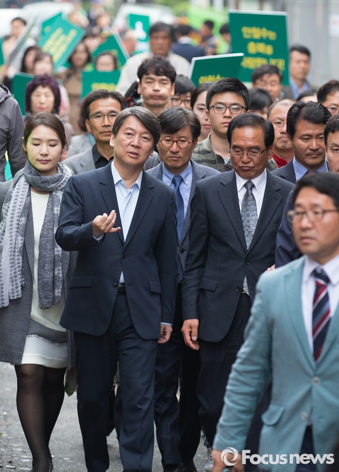 (청주=포커스뉴스) 안철수 국민의당 상임공동대표가 21일 오후 충북 청주 상당구 성안길을 찾아 시민들과 인사를 하기 위해 이동하고 있다. 안 대표는 4.13 국회의원선거에서 국민의당을 지지해준 것에 대한 감사의 뜻을 전했다.