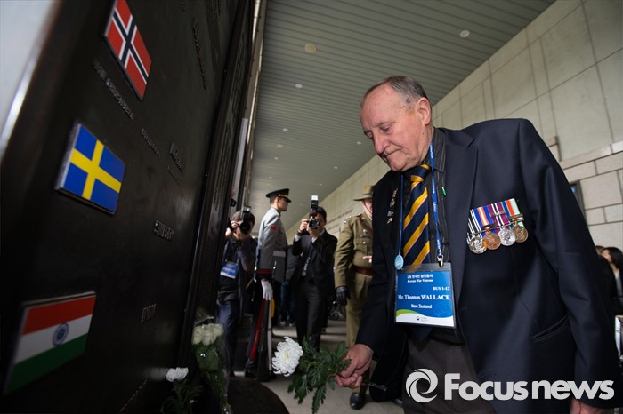 (서울=포커스뉴스) 임진강 및 가평전투 65주년을 맞은 21일 오후 서울 용산구 전쟁기념관에서 6.25전쟁에 참전했던 영연방(영국, 캐나다, 호주, 뉴질랜드) 참전용사들이 헌화를 하고 있다.