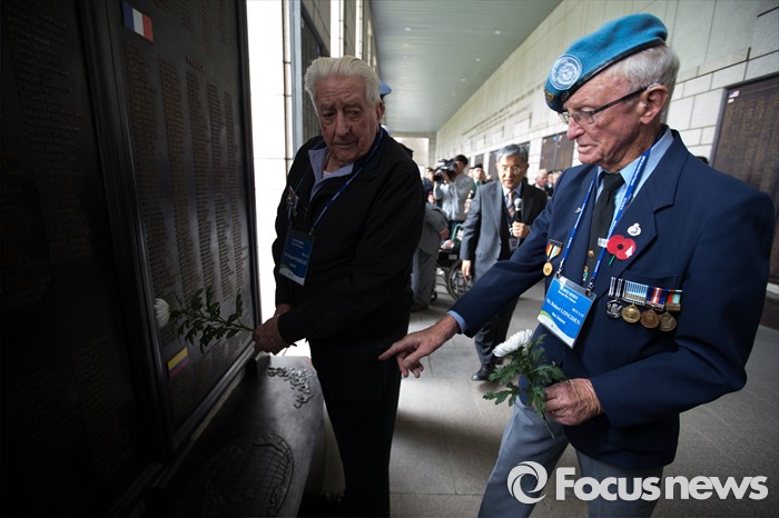 (서울=포커스뉴스) 임진강 및 가평전투 65주년을 맞은 21일 오후 서울 용산구 전쟁기념관에서 6.25전쟁에 참전했던 영연방(영국, 캐나다, 호주, 뉴질랜드) 참전용사들이 헌화를 하고 있다.