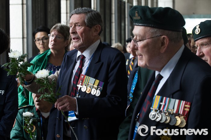 (서울=포커스뉴스) 임진강 및 가평전투 65주년을 맞은 21일 오후 서울 용산구 전쟁기념관에서 6.25전쟁에 참전했던 영연방(영국, 캐나다, 호주, 뉴질랜드) 참전용사들이 헌화를 하고 있다.