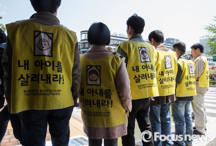 이번 사태로 고통 받고 계시는 분들께 다시 한 번 위로의 말씀을 간곡히 드립니다. 저희는 앞으로 지속적인 사건 해결 노력을 통해 소비자들의 신뢰를 다시 얻을 수 있도록 최선을 다할 것임을 약속드립니다.(서울=포커스뉴스) 18일 오전 서울 서초구 서울중앙지방검찰청 앞에서 가습기살균제피해자와가족모임 등 단체들이 엄정한 가습기 살균제 피해 조사를 촉구하는 기자회견을 하고 있다. 2016.04.18 성동훈 기자