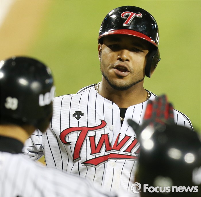 (서울=포커스뉴스) 21일 서울 잠실구장에서 열린 2016 프로야구 NC-LG 경기 5회말 2사 1,2루에서 LG 히메네스가 좌월 3점 연타석 홈런을 치고 동료들의 환영을 받으며 홈인하고 있다.