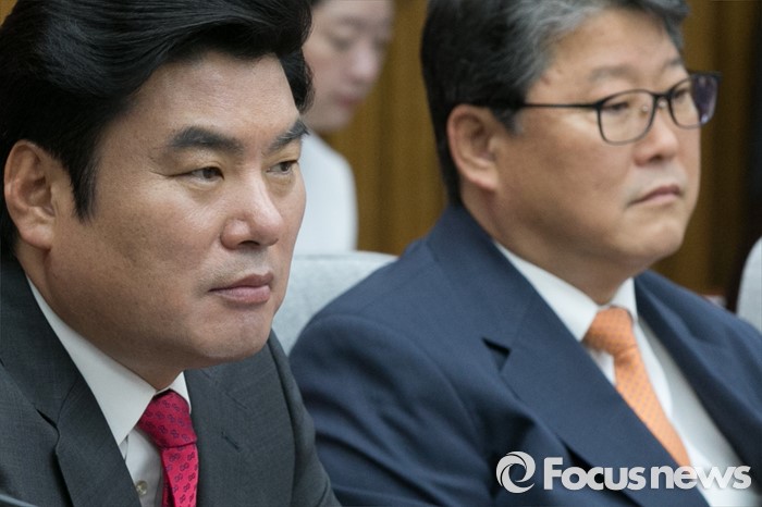 (서울=포커스뉴스) 원유철(왼쪽) 새누리당 원내대표와 조원진 원내수석부대표가 22일 오전 서울 여의도 국회에서 열린 원내대책회의에 참석해, 생각에 잠겨 있다.