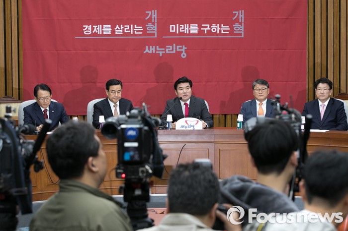 (서울=포커스뉴스) 원유철(가운데) 새누리당 원내대표가 22일 오전 서울 여의도 국회에서 열린 원내대책회의에 참석해, 모두발언하고 있다.