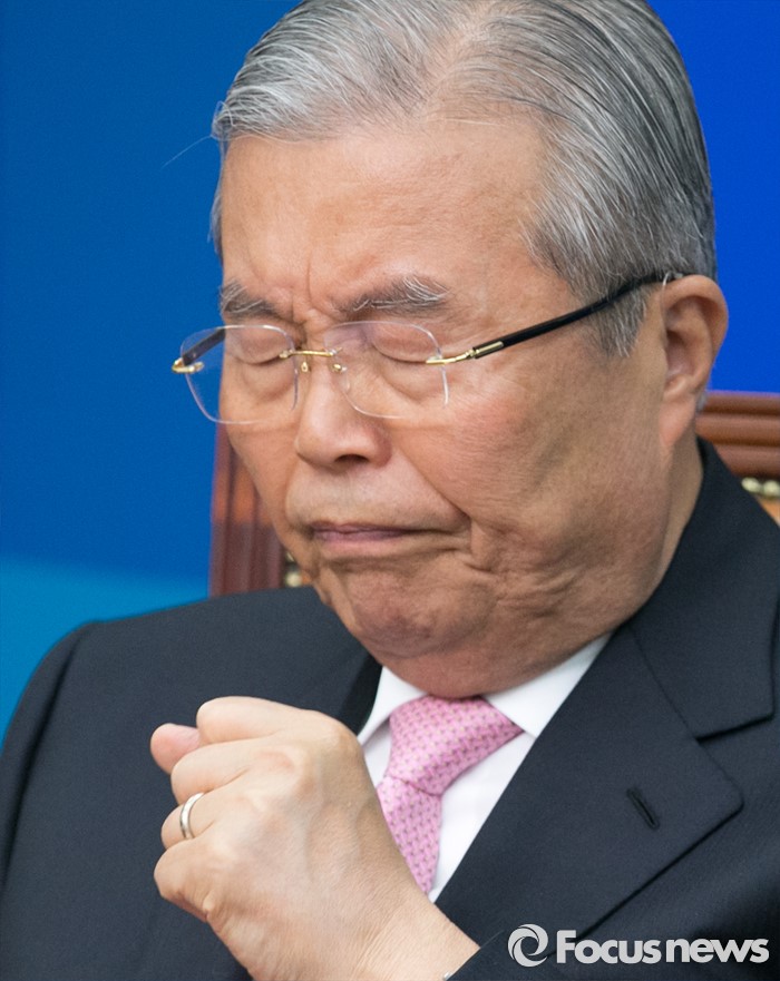 (서울=포커스뉴스) 김종인 더불어민주당 비대위 대표가 22일 오전 서울 여의도 국회에서 열린 비상대책위원회의에 참석해 기침을 하고 있다.