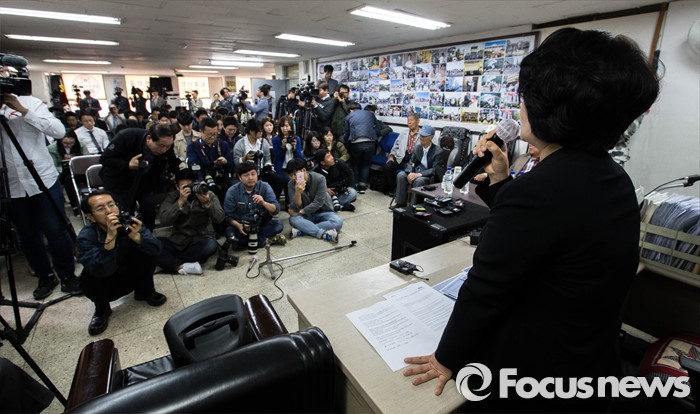 (서울=포커스뉴스) 김미화 자유민연합 대표가 22일 오전 서울 종로구에 위치한 어버이연합 사무실에서 기자회견을 하고 있다. 전경련에서 자금지원을 받은 의혹으로 논란에 휩싸인 어버이연합은 이날 기자회견을 열고 언론에 보도된 어버이연합 관련 기사들에 반박했다.