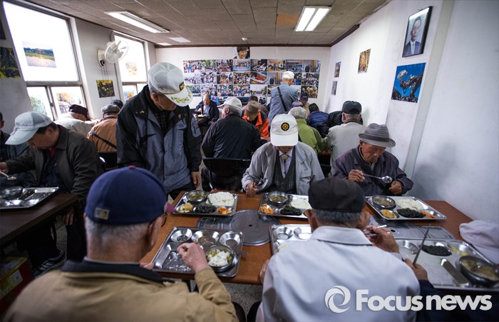 (서울=포커스뉴스) 22일 오전 서울 종로구에 위치한 어버이연합 사무실에서 전경련 자금지원 의혹에 휩싸인 어버이연합의 기자회견이 진행되고 있는 가운데 어버이연합 관계자들이 점심 식사를 하고 있다.