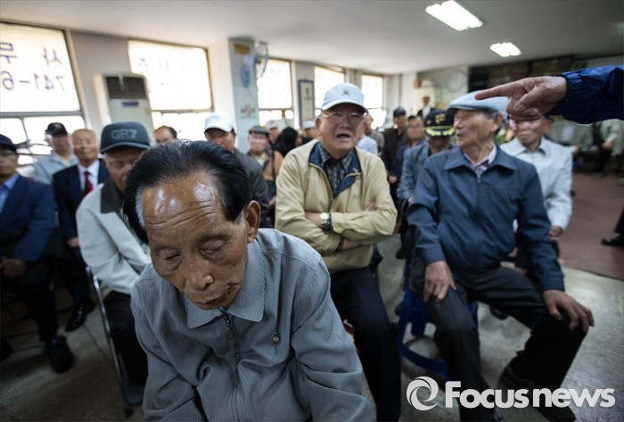 (서울=포커스뉴스) 어버이연합 관계자들이 22일 오전 서울 종로구에 위치한 어버이연합 사무실에서 열린 기자회견에 참석, 추선희 사무총장의 발언을 듣고 있다. 전경련에서 자금지원을 받은 의혹으로 논란에 휩싸인 어버이연합은 이날 기자회견을 열고 언론에 보도된 어버이연합 관련 기사들에 반박했다.