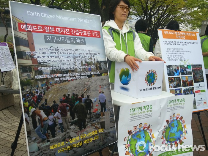 지구시민운동연합은 이날 오후 서울 광화문 시민열린마당에서부터 종로구 인사문화마당까지 행진하며 성금 모금 운동을 진행했다. 모인 성금을 일본과 에콰도르에 기부할 예정이다.