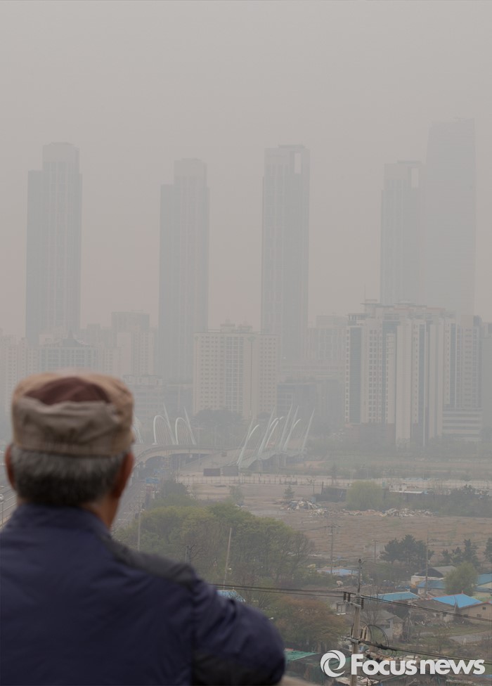 (인천=포커스뉴스) 몽골과 중국 북부에서 발생한 황사가 서해안으로 유입된 22일 오후 인천시 연수구 동춘터널에서 바라본 송도국제도시가 황사와 안개에 갇혀 있다.