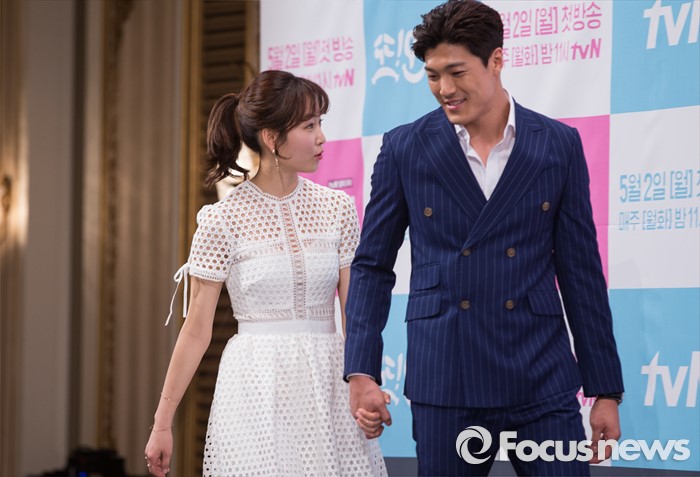 (서울=포커스뉴스) 22일 오후 서울 강남구 임피리얼 팰리스호텔에서 열린 tvN 월화드라마 '또! 오해영' 제작발표회에 참석한 배우 서현진(왼쪽)과 이재윤이 포토타임을 위해 이동하고 있다.